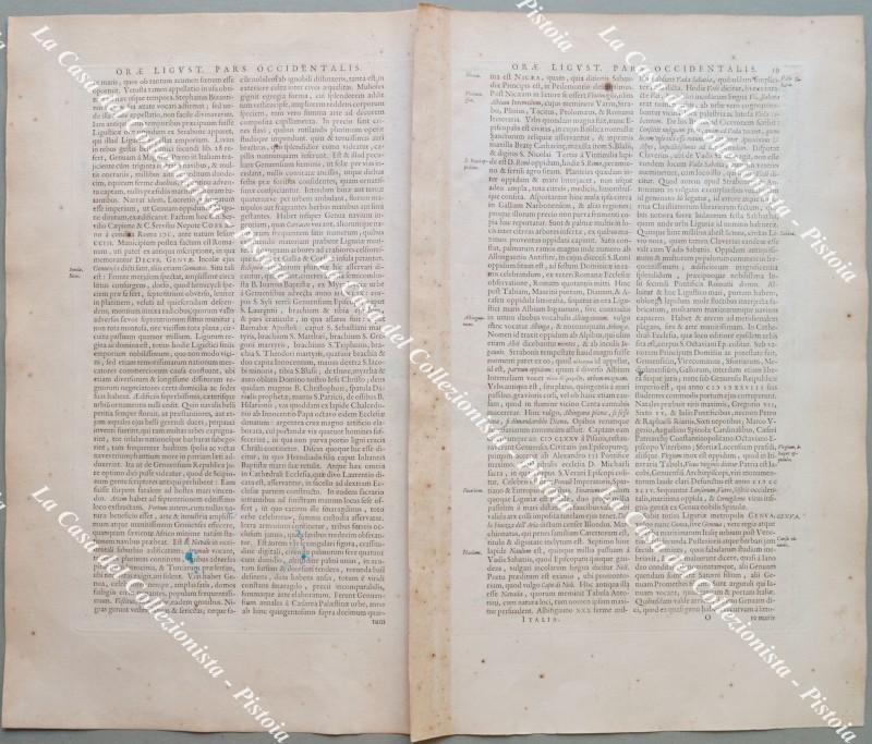 LIGURIA. “RIVIERA DI GENOVA”. Carta geografica a doppia pagina tratta dall’ATLAS MAIOR di Willem Joan Blaeu edito in Amsterdam tra il 1662 e il 1665, testo in latino a retro.