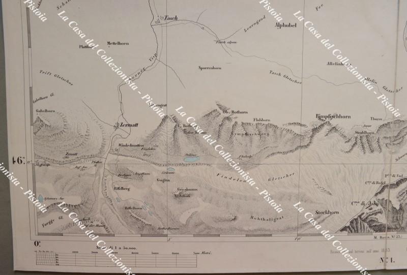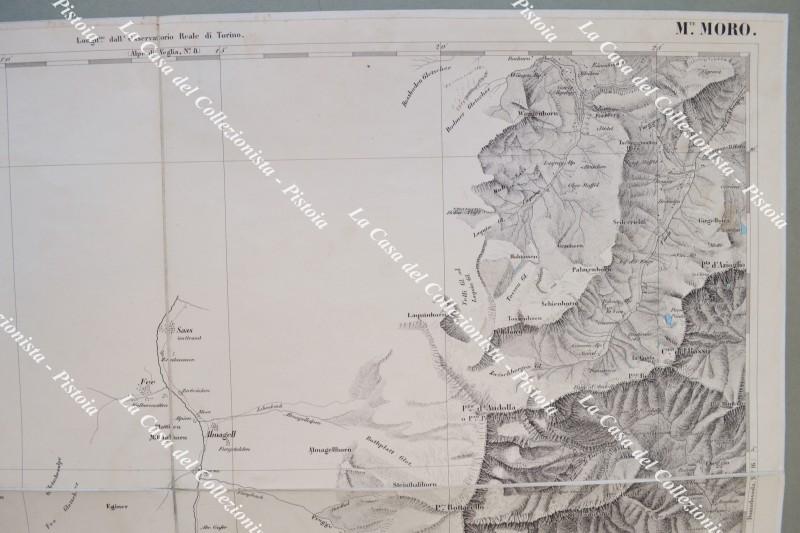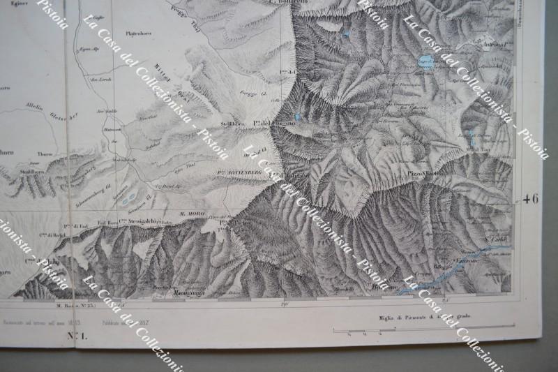 PIEMONTE, anno 1857. MONTE MORO, foglio n. XXV. Carta geografica realizzata dal Corpo di Stato Maggiore ed edita a Torino da Giovanni Maggi.