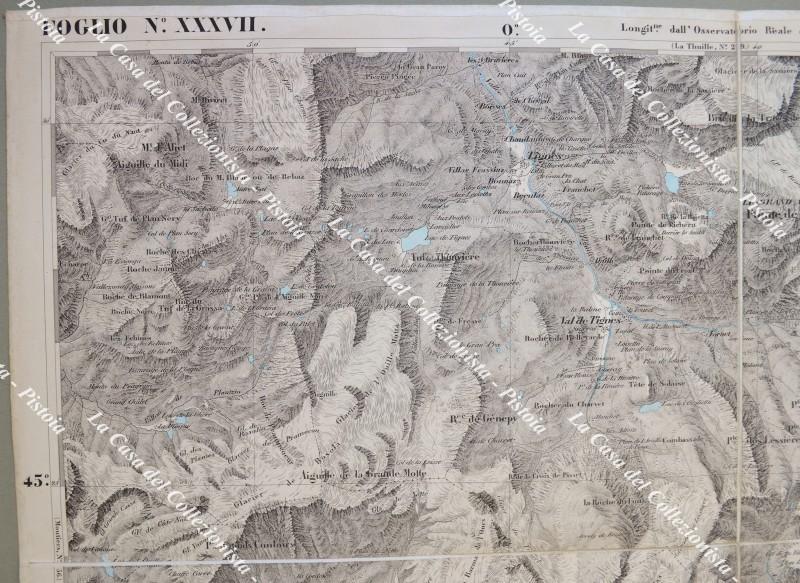 PIEMONTE. MONTE ISERAN, foglio n. XXVII. Anno 1858. Carta geografica alla scala di 1:50.000 realizzata dal Corpo di Stato Maggiore ed edita a Torino da Giovanni Maggi.