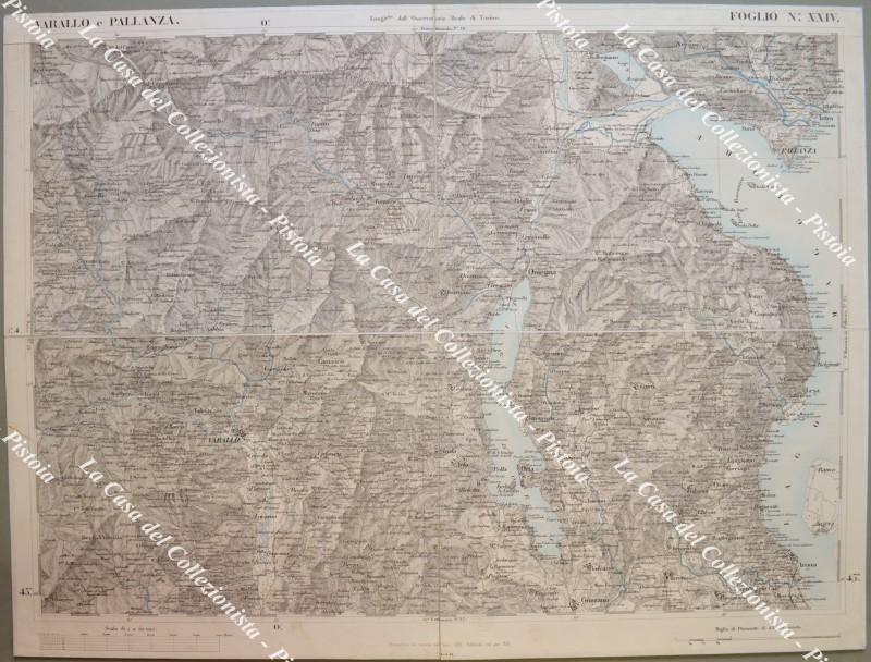 PIEMONTE. VARALLO e PALLANZA, foglio numero XXIV. Anno 1855. Carta geografica alla scala di 1:50.000 realizzata dal Corpo di Stato Maggiore ed edita a Torino da Giovanni Maggi.