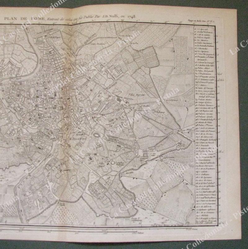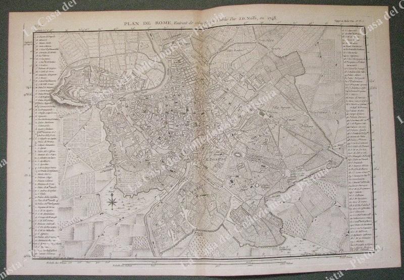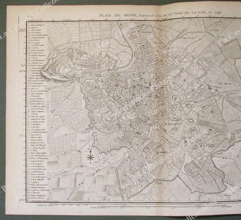ROMA. ANNO 1796. " Plan de Rome". Da "Voyage en Italie" di J.J. De La Lande, Parigi 1786. Aquaforte di mm 380x255(ai margini mm 420x270). UNITE 3 vedute incise all'acquaforte: Piazza S.Pietro, sua pianta, Fontana di Trevi, Piazza Colonna. Ottima conservazione. (Rif.D498 - 227/75)