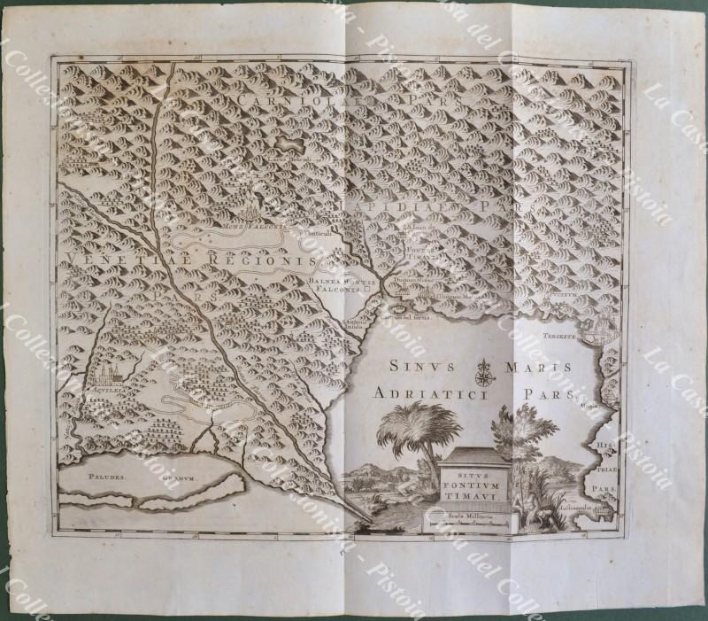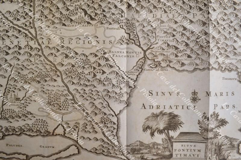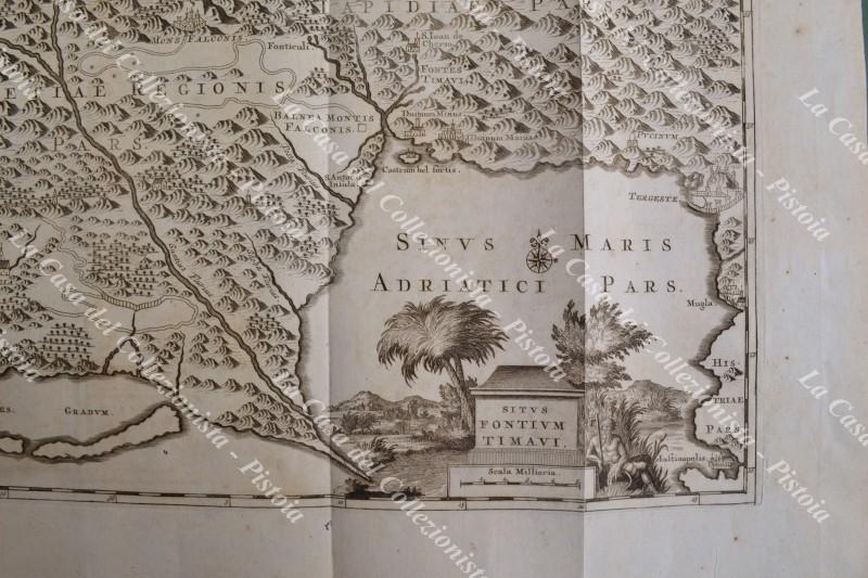 VENETO-FRIULI. "SITUS FONTIUM TIMAVI". Rara carta tratta da "Thesaurus antiquitatum et historiarum Italiae..." di Georgius Graevius, Leida, Pieter Van der Aa, circa 1720. Acquaforte di mm 375x310 (ai margini mm 460x397). Minimi punti di ingiallimento, ottima conservazione. (Rif.F2220)