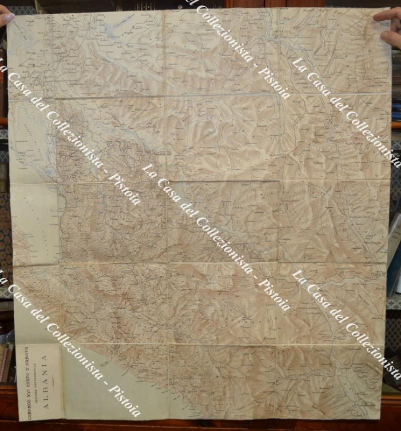 Militaria, PRIMA GUERRA, ALBANIA. CARTA DELLA ZONA D'OCCUPAZIONE DI VALONA SCALA 1:100.000. Ufficio Topografico del Comando Truppe Occupazione Albania, settembre 1916. Più volte ripiegata, cm 87x84. Piccole imperfezioni. (Rif.F7431)