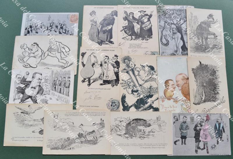 15 CARTOLINE SATIRICHE inizio 1900 (5 viaggiate) di produzione francese e italiana