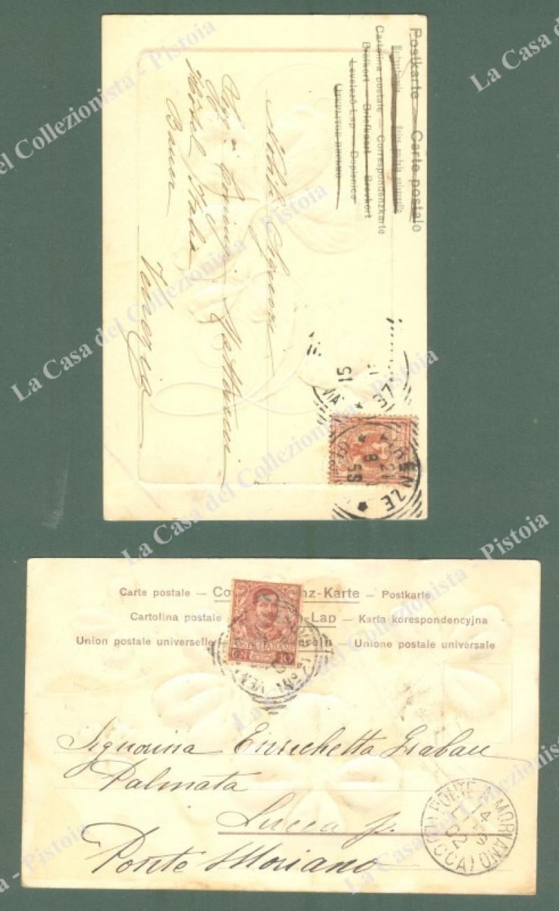 2 CARTOLINE A RILIEVO. Viaggiate 1902.