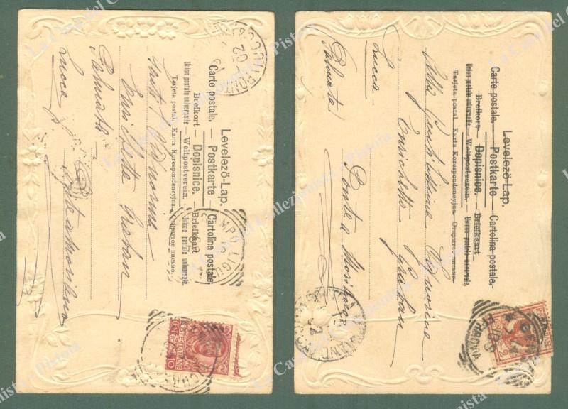 2 CARTOLINE A RILIEVO. Viaggiate nel 1902. (Rif.E1537)