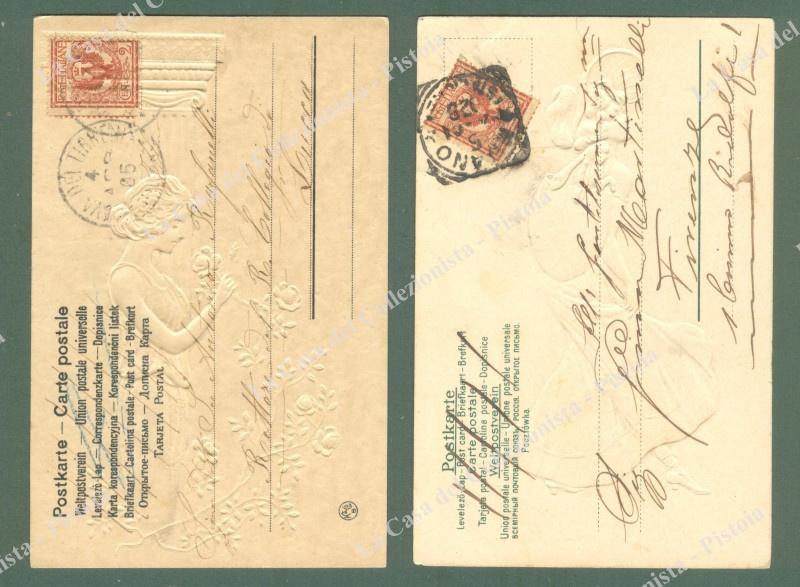 2 CARTOLINE A RILIEVO. Viaggiate nel 1904 e 1905. (Rif.E1516)