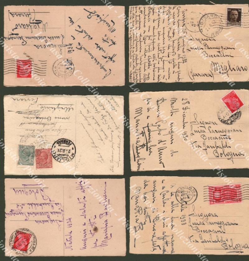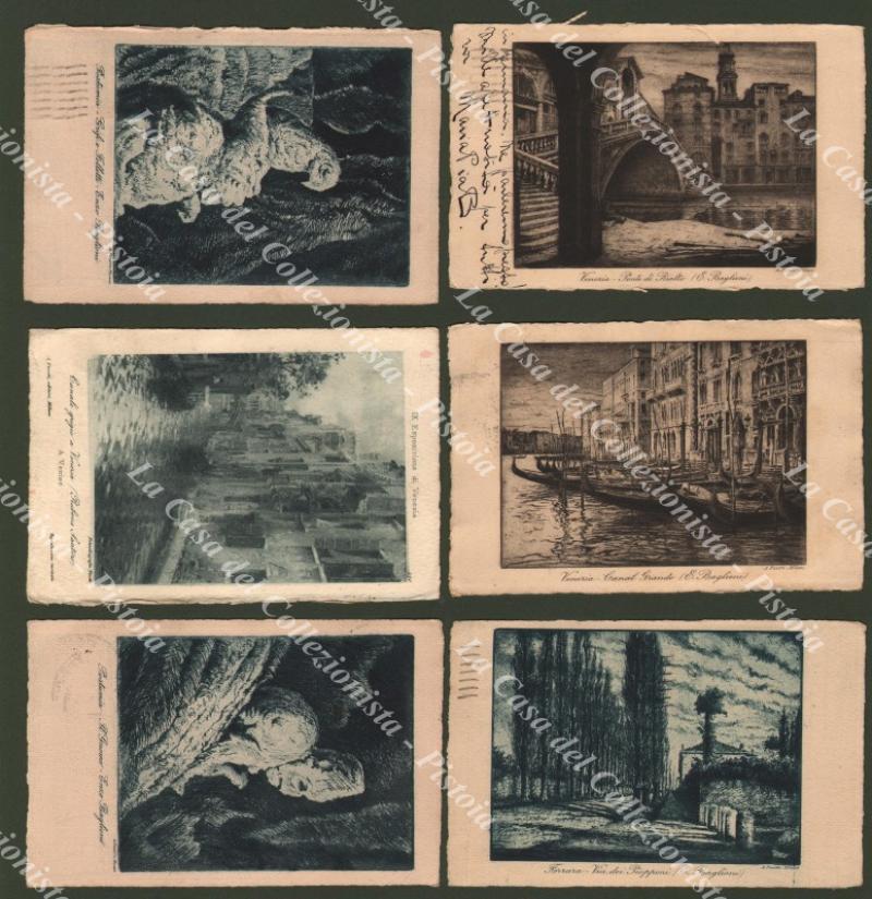 6 CARTOLINE in fotocalcografia di A. Fusetti di Milano: 3 di Venezia, 2 di Postumia, 1 di Ferrara. Tutte viaggiate 1921-1934. Buona conservazione. (Rif.F1265)