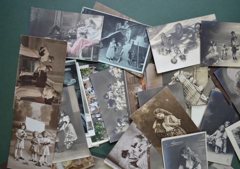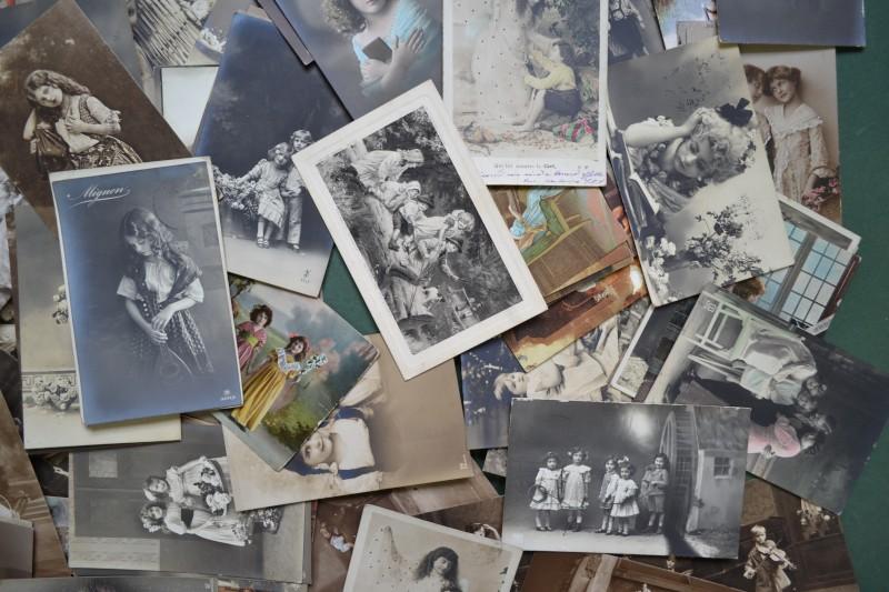 BAMBINI, collezione di 151 cartoline di piccolo formato (unico destinatario) per lo più spedite tra il 1910 ed il 1920. La conservazione è buona eccetto qualche lieve inevitabile difetto. Non vi sono cartoline augurali. (Rif.F7360)