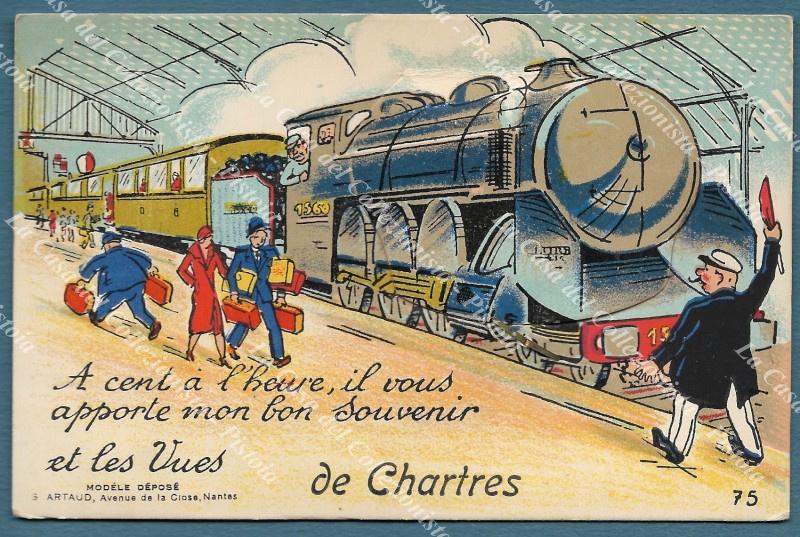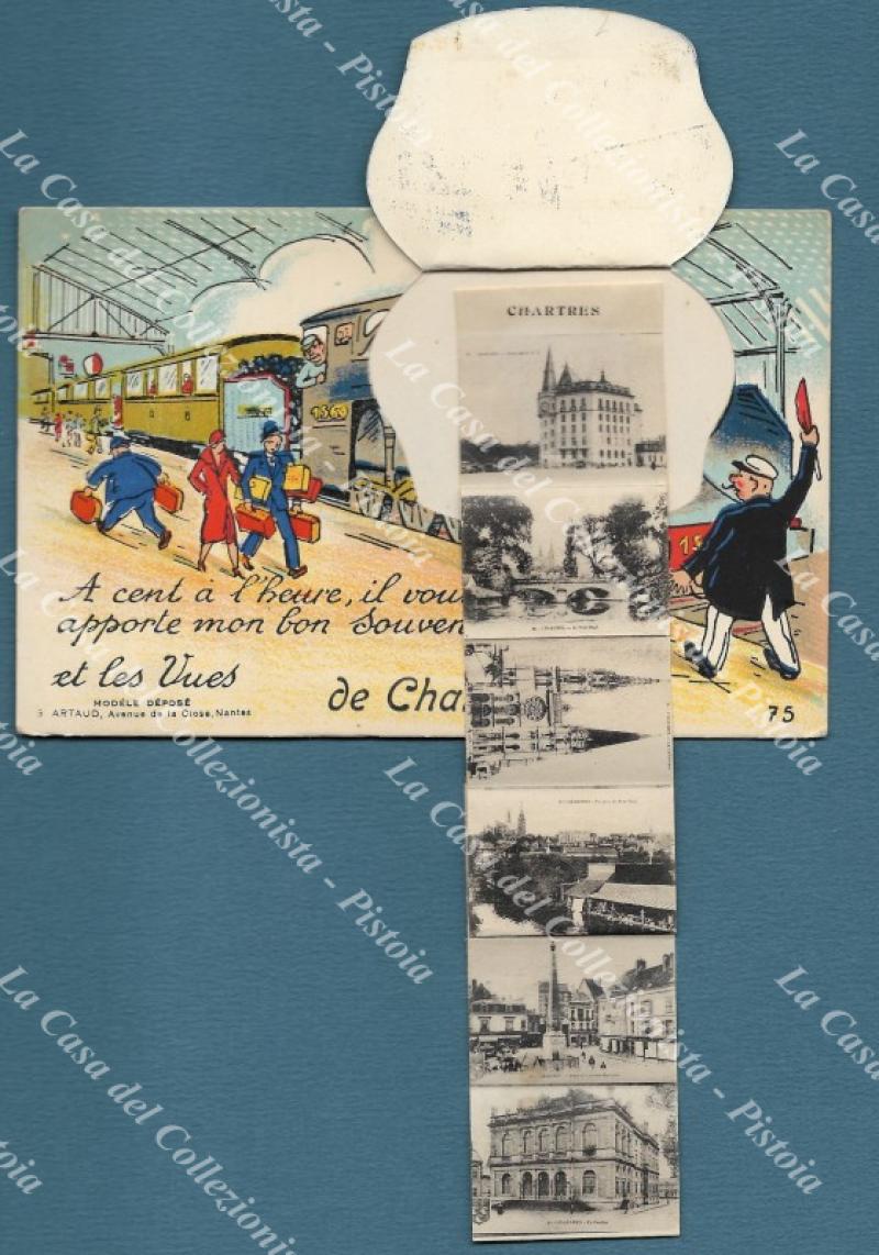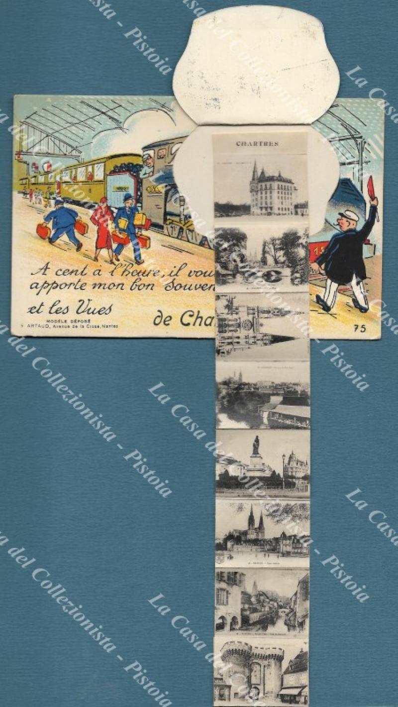 CARTOLINA AUGURALE apribile. Contiene unite a fisarmonica 10 vedute di Chartres, non viaggiata, anni '20. (Rif.F2308)