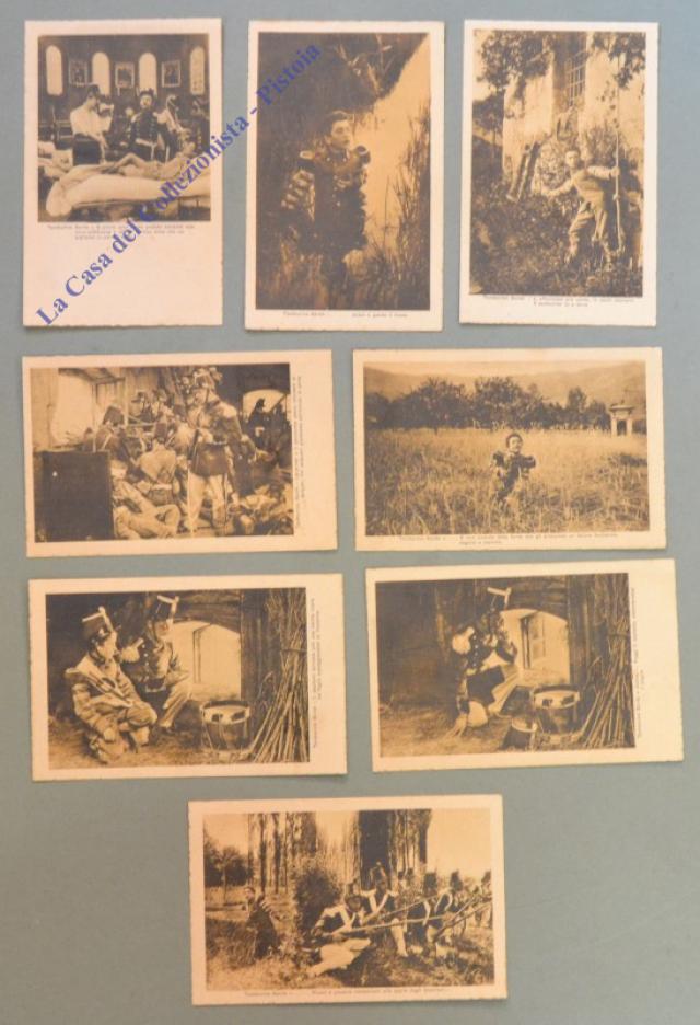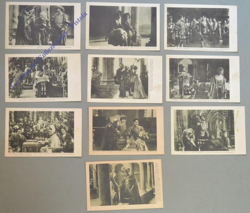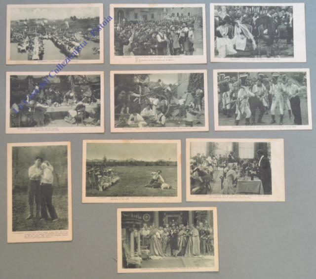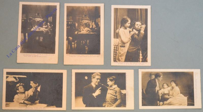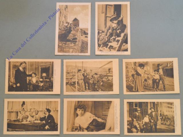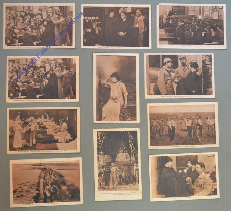 CINEMA MUTO. Blocco di 81 diverse cartoline d'epoca databili agli anni '20. Ciascuna riporta una scena e la didascalia. Disponiamo dei seguenti film: IL PICCOLO SCRIVANO FIORENTINO (6 cartoline) *** MADRI FRANCESI (11 cartoline) *** LA PICCOLA VEDETTA LOMBARDA (6 cartoline) *** VALOR CIVILE (4 cartoline) *** SANGUE ROMAGNOLO (6 cartoline) *** CICERVACCHIO (10 cartoline) *** DISFIDA DI BARLETTA (10 cartoline) *** IL PICCOLO PATRIOTA PADOVANO (8 cartoline) *** VAL D'OLIVI (12 cartoline) *** TAMBURINO SARDO (8 cartoline). Ottima conservazione. (Rif.D5747)