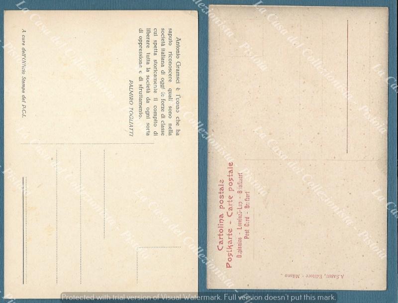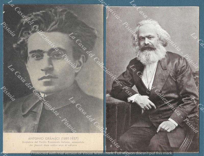COMUNISMO. 2 cartoline d'epoca inizio anni 1950 raffiguranti Marx e Gramsci. (Rif.F5129)