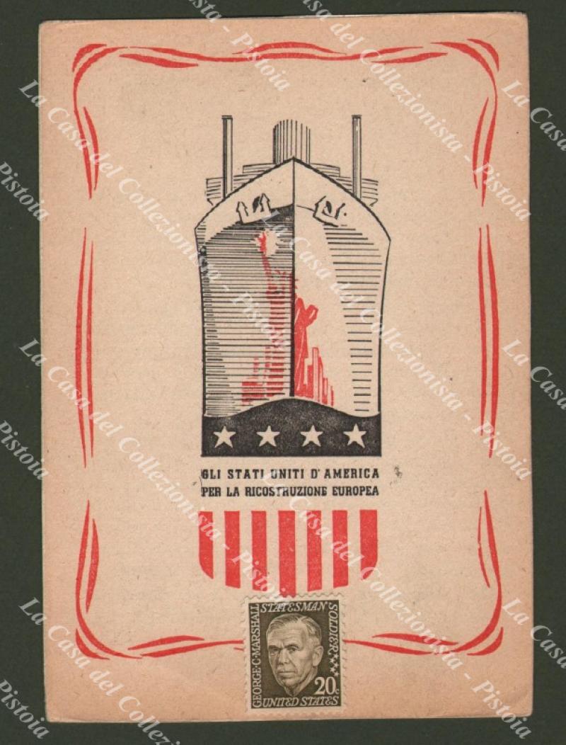 GLI STATI UNITI D'AMERICA PER LA RICOSTRUZIONE EUROPEA. Cartolina d'epoca formato grande, non viaggiata. Circa 1948. (Rif.F1348)