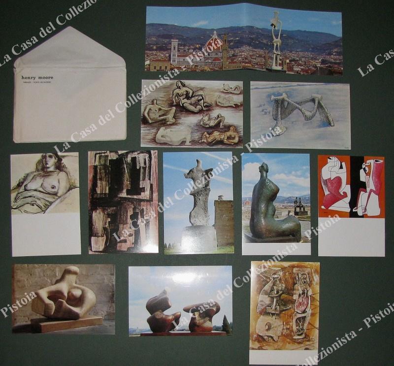 HERRY MOORE. 1972 mostra a Firenze a Forte Belvedere. 10 cartoline a colori, formato grande, contenute in cartolina doppia, il tutto contenuto in busta. Ottima conservazione. (Rif.E1676)