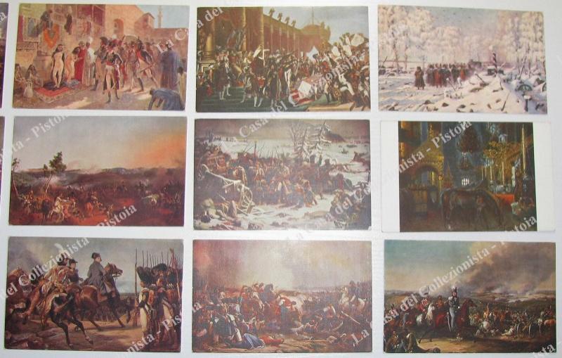 NAPOLEONE. 19 cartoline policrome raffiguranti per lo più episodi della compagna di Russia. Non viaggiate, produzione francese, inizio '900. Ottima conservazione. (Rif.E3958)