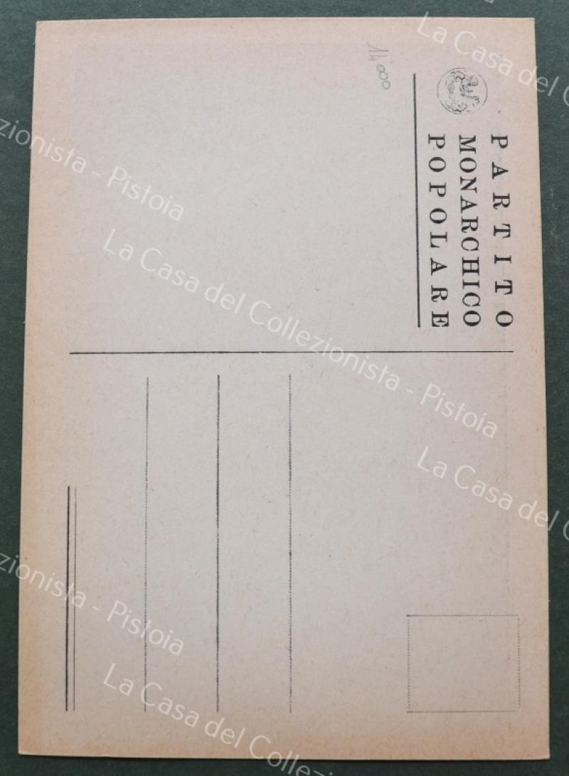 PARTITO MONARCHICO. Cartolina d'epoca di propaganda elettorale, circa 1953. (Rif.F4181)