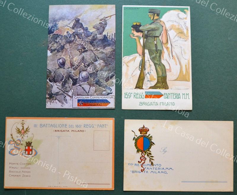 159 e 160 REGGIMENTO FANTERIA BRIGATA MILANO. 4 cartoline d'epoca reggimentali