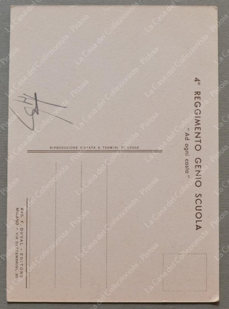4° REGGIMENTO GENIO SCUOLA. Cartolina d'epoca, ediz. Duval, anni 1930