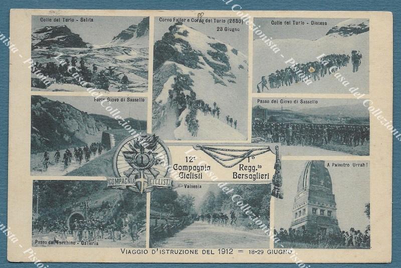 BERSAGLIERI 12° COMPAGNIA CICLISTI. Viaggio d'istruzione del giugno 1912. Cartolina d'epoca formato piccolo, viaggiata. (Rif.F7754)