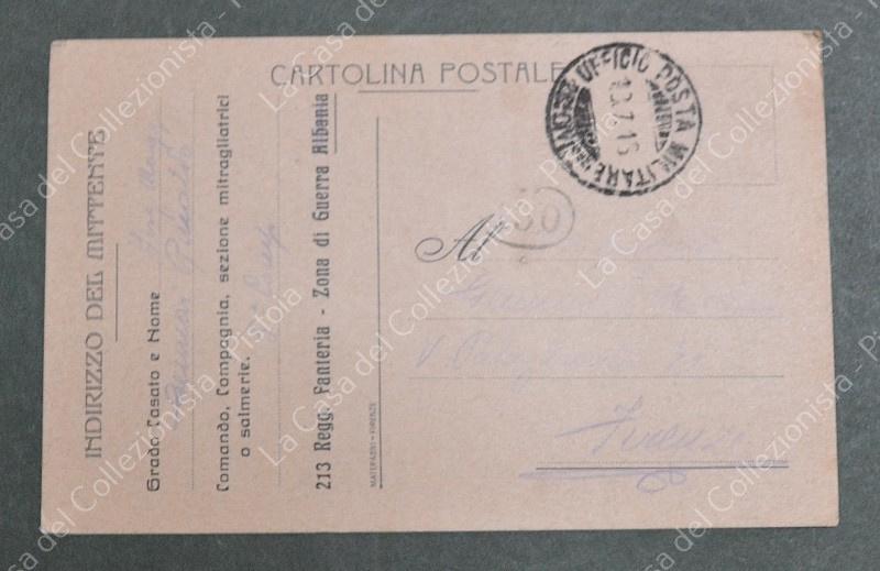 PRIMA GUERRA. 213° Regg. Fanteria. Franchigia militare. Cartolina d'epoca viaggiata nel 1916. (Rif.F5881)