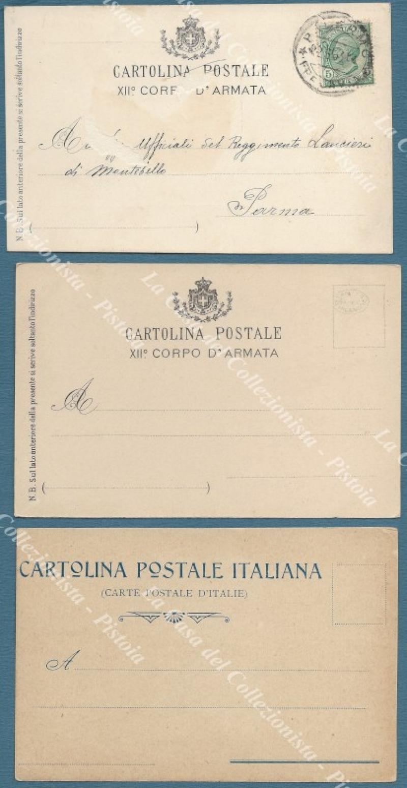 XII CORPO D'ARMATA. 3 cartoline inizio '900 (una viaggiata).