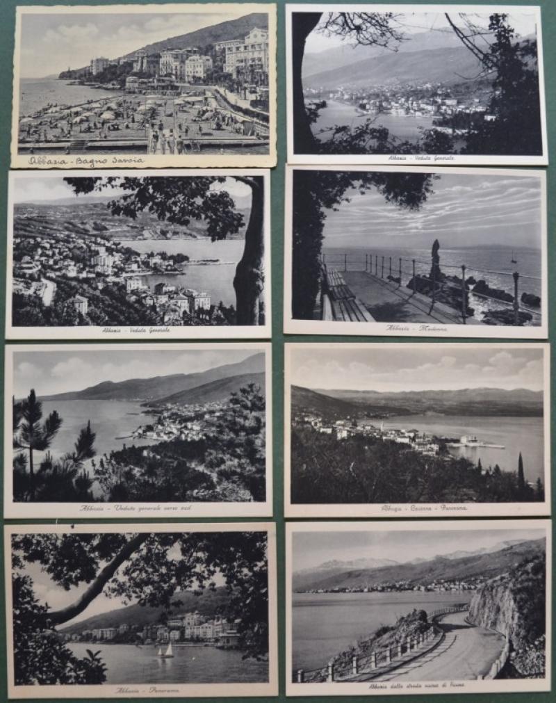 ABBAZIA, Istria, Croazia. 8 diverse cartoline d'epoca, anni 1930 ABBAZIA, Istria, Croazia. 8 diverse cartoline d'epoca, anni 1930 ABBAZIA, Istria, Croazia. 8 diverse cartoline d'epoca, anni 1930