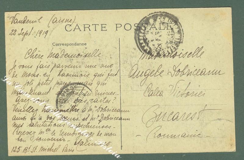 France, Picardie, Aisne. MONS EN LAONNOIS. La grand Rue. Cartolina d'epoca. Anno 1919. Buona conservazione. (Rif.D2409)