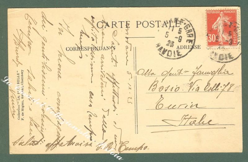 France, Rhone, Alpes, Savoie. MODANE. Gare et la Poste. Cartolina d'epoca. Anno 1925. Buona conservazione. (Rif.D2415)