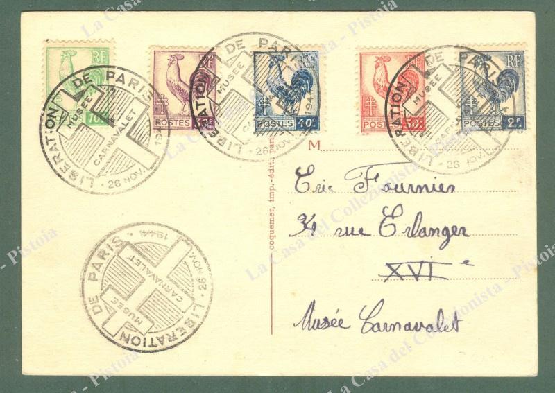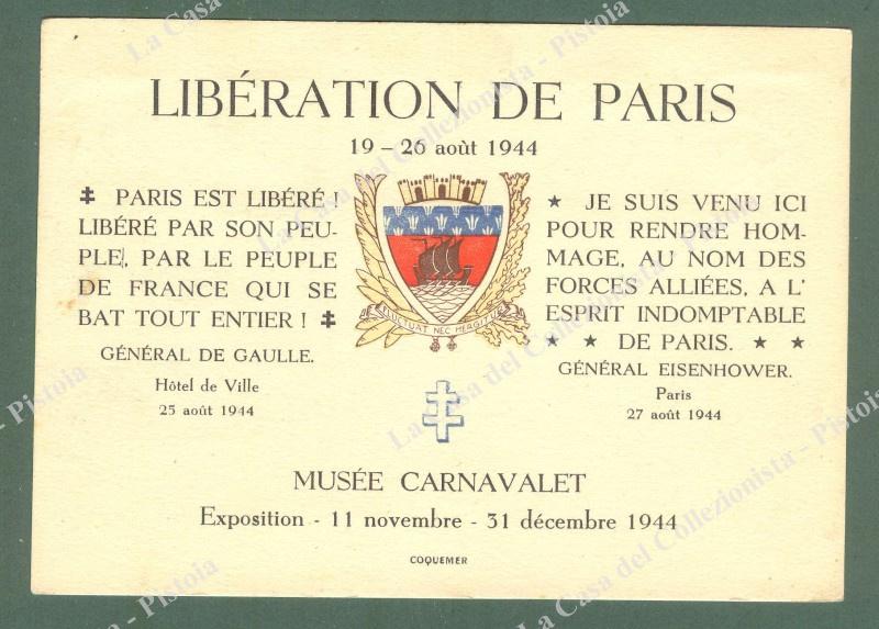 LIBERAZIONE DI PARIGI. Cartolina d'epoca con annullo speciale del 26.11.1944