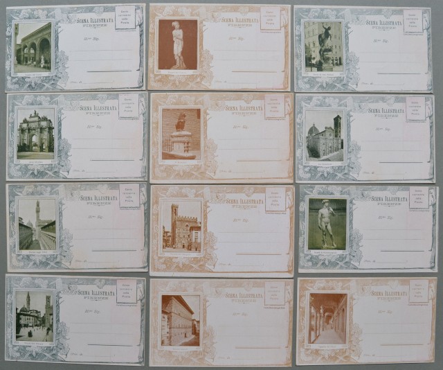 SCENA ILLUSTRATA di Firenze. 12 diverse cartoline pubblicitarie (a retro hanno diverse illustrazioni) non viaggiate, inizio '900.