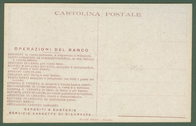 BANCO DI ROMA. Cassette di sicurezza. Cartolina disegnata a colori. Non viaggiata, circa 1920. Ottima conservazione. (Rif.B9210)