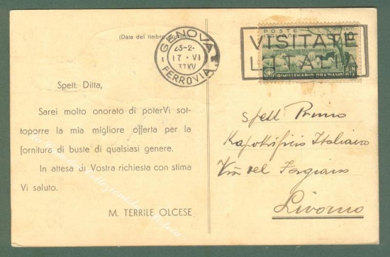BUSTE TERRILE OLCESE di Genova. Cartolina d'epoca viaggiata nel 1937. Ottima conservazione. (Rif.D463)
