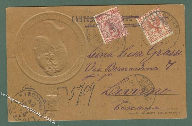 CATANIA. 1° Centenario della nascita di Bellini. Cartolina d'epoca viaggiata nel 1902. Ottima conservazione. (Rif.D349)
