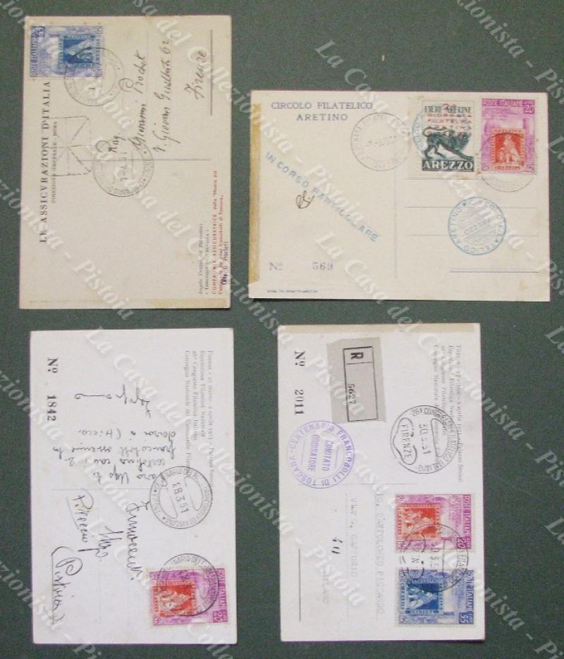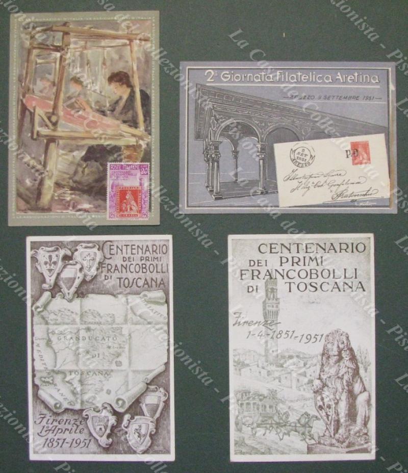 CENTENARIO PRIMI FRANCOBOLLI DI TOSCANA 1851-1951. 4 cartoline d'epoca con annulli speciali e francobolli. Lievi difetti. (Rif.E5306)