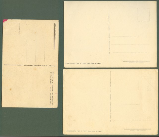 CINEMA. Tre cartoline anni '50, non viaggiate. Due reclamizzano il film "Marcellino Pan y Vino", una il film "La Città dei ragazzi". Piccole usure. (Rif.C4254)