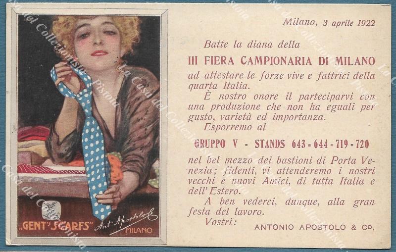 CRAVATTE ANTONIO APOSTOLO di Milano. Cartolina d'epoca viaggiata nel 1922. (Rif.F3688)