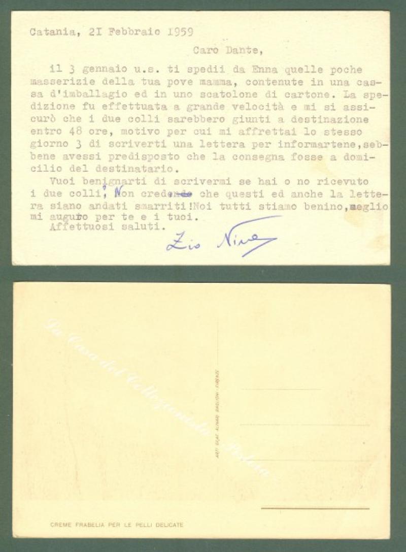 CREMA FRABELIA - POLVERE DA SPARO SIPE. Due cartoline d'epoca pubblicitarie (una viaggiata nel 1959). Ottima conservazione. (Rif.D471)