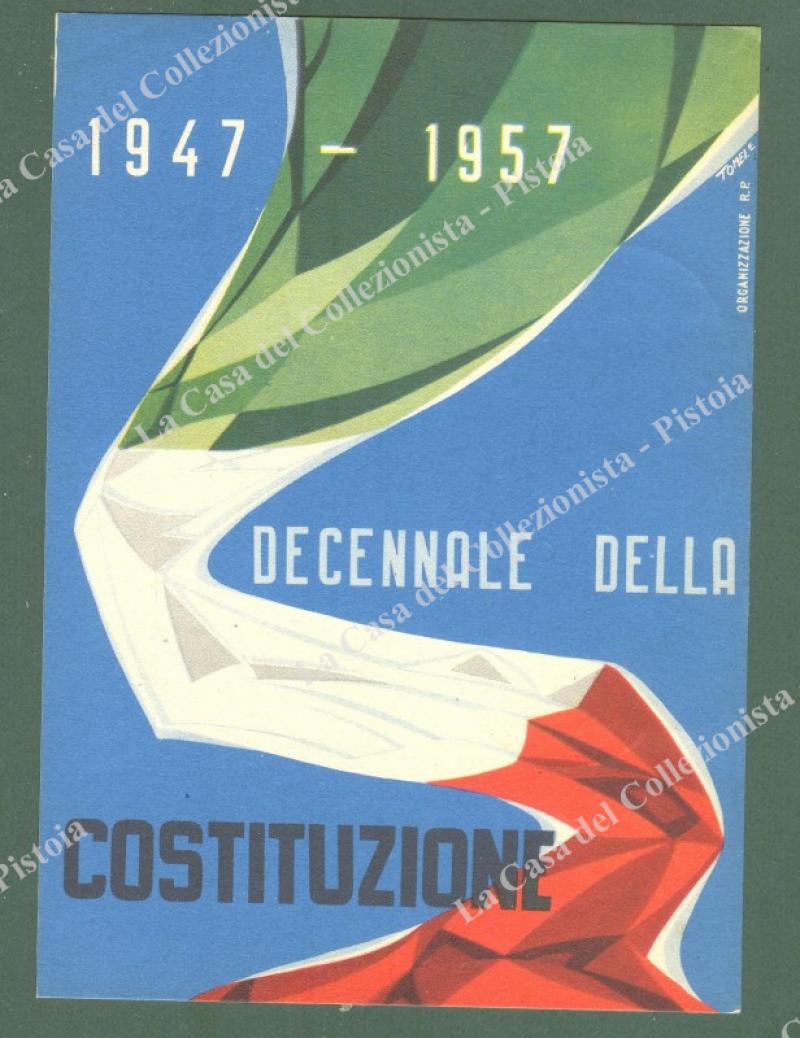 DECENNALE DELLA COSTITUZIONE 1947-1957. Cartolina d'epoca dis. di E.Tomei