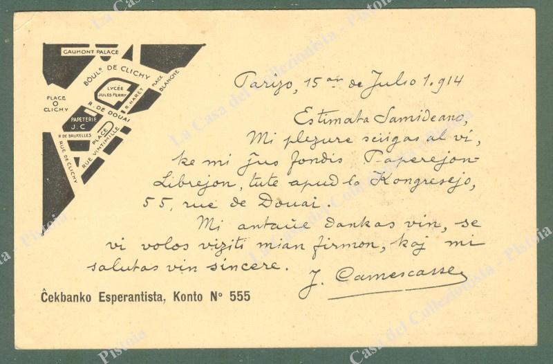 ESPERANTO. Cartolina del 1914 che annuncia l'apertura di una libreria esperantista a Parigi