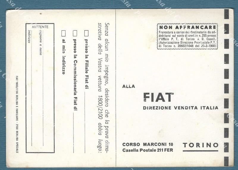 FIAT. Vetture 1800/2100. Cartolina d'epoca pubblicitaria anni 1960. Piccole imperfezioni. (Rif.F2696)