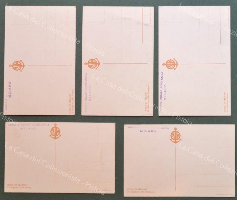 FIERA DI MILANO (circa 1930). 5 cartoline d'epoca: padiglioni di Germania, Marche, Puglia, Romagna, Irpino. (Rif.F3182)