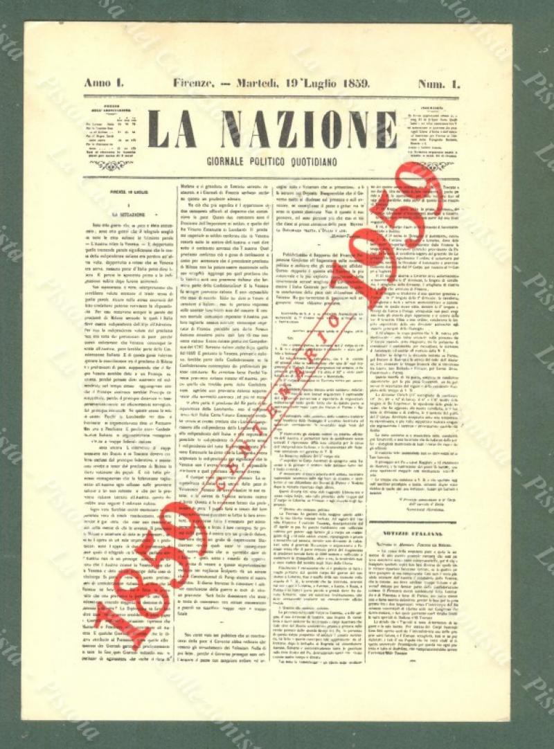 GIORNALE LA NAZIONE. Centenario 1859-1959. Annullo speciale
