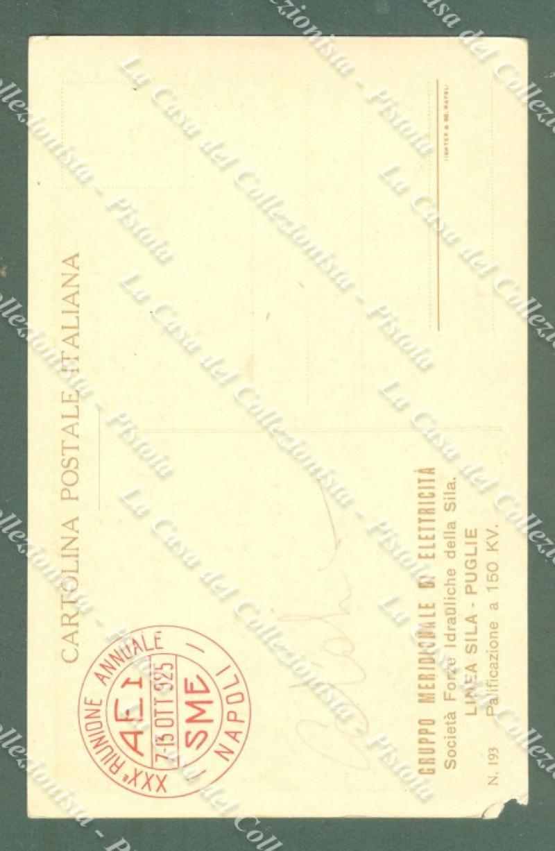 GRUPPO MERIDIONALE ELETTRICITA'. Linea Sila-Puglie. Anno 1925. Cartolina d'epoca non viaggiata, angolo difettoso. (Rif.E4679)