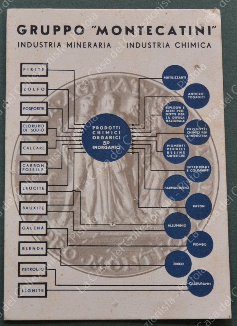GRUPPO MONTECATINI. Industria Mineraria - Industria Chimica. Cartolina d'epoca formato grande, viaggiata nel 1938. Forellini di spillo. (Rif.F7772)