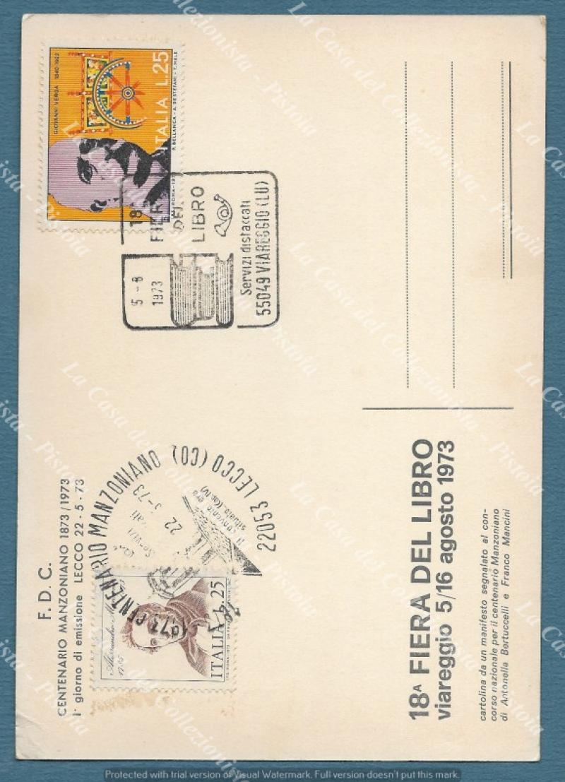 LECCO. Centenario manzoniano. Cartolina d'epoca formato grande, anno 1973. (Rif.F5142)