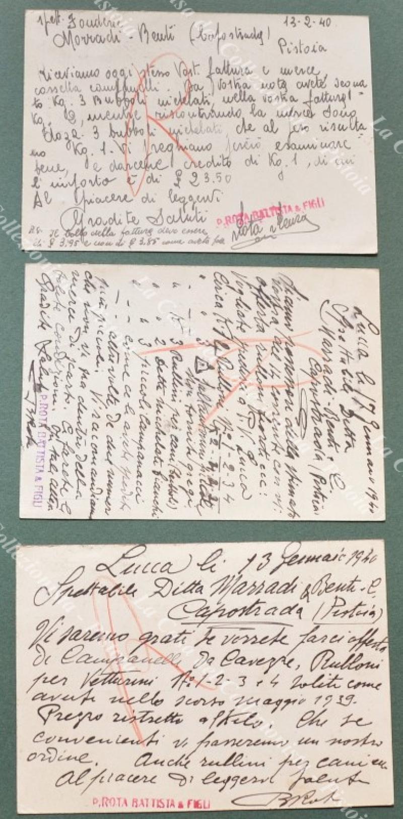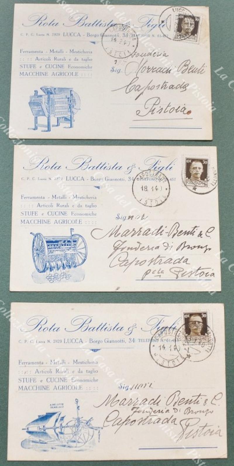 LUCCA. Ferramenta Rota. 3 diverse cartoline viaggiate 1940