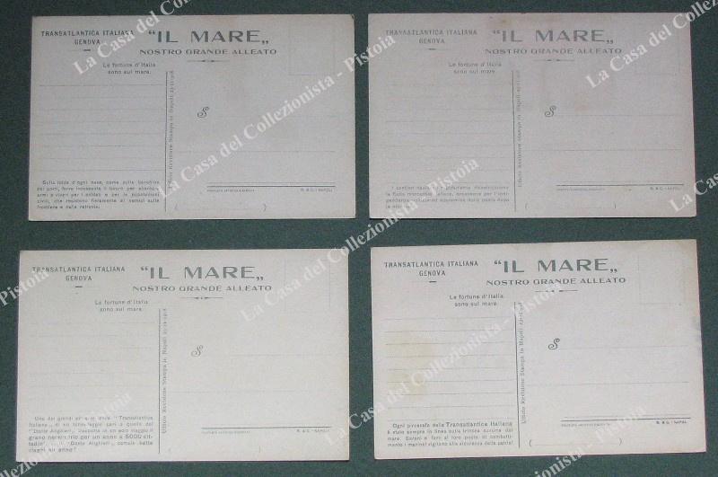 NAVIGAZIONE. TRANSATLANTICA ITALIANA GENOVA. 4 diverse cartoline d'epoca, non viaggiate, anni '20. Ottima conservazione. (Rif.E0169)