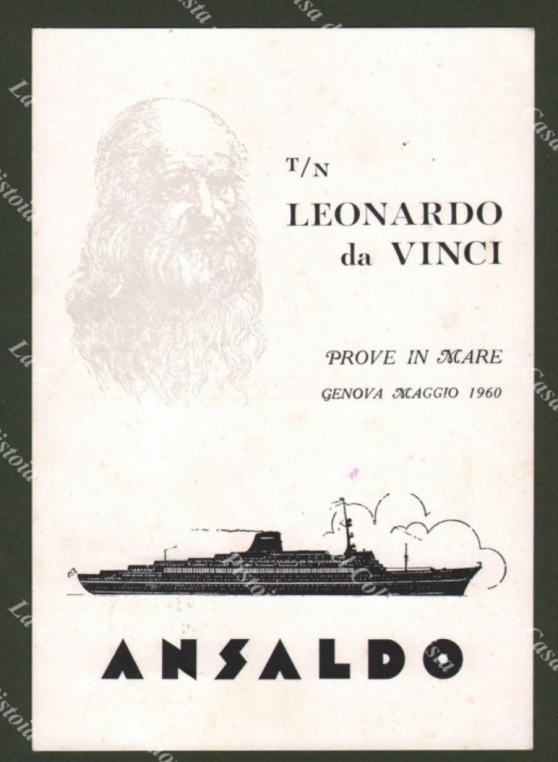 T/N LEONARDO DA VINCI. Cantieri ANSALDO. Prove di mare del maggio 1960. Bollo postale speciale. Ottima conservazione. (Rif.F1436)