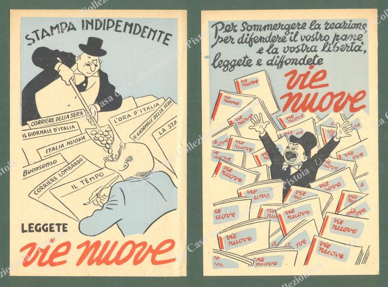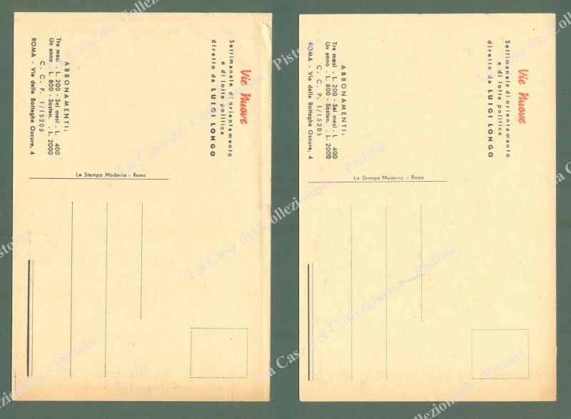 VIE NUOVE. Settimanale politico comunista. 2 cartoline d'epoca pubblicitarie, non viaggiate, inizio anni '50. Buona conservazione. (Rif.E0158)
