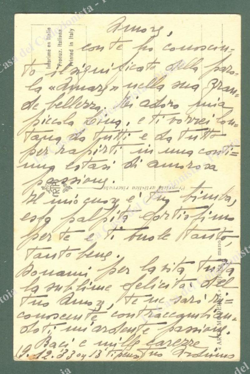 ARTE MODERNA. Cartolina d'epoca dipinta a mano, viaggiata in busta nel 1933. Ottima conservazione. (Rif.E3395)